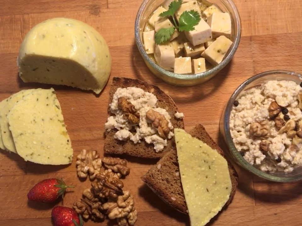 falsa Feta de Tofu e um falso requeijão de tofu.