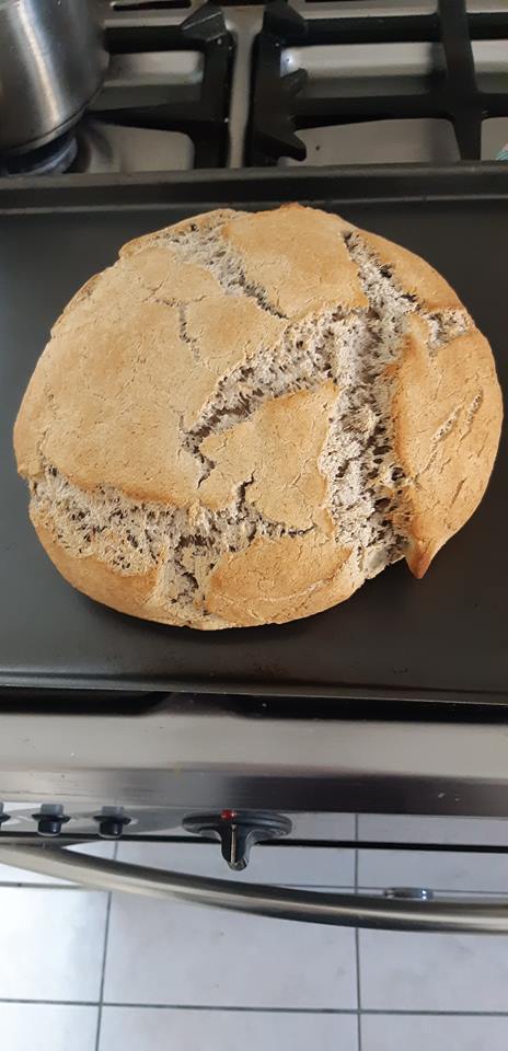 O primeiro pão sem glúten da nossa Princesse Aurore que foi incansável no 1º WOrkshop de pão no Quintal. Le premier pain sans gluten de notre princesse Aurore, MónicaLeonorMartaAurelie.
